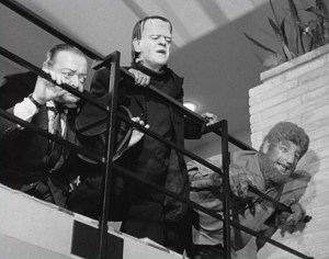 It’s also a piece of horror history – even while it’s really nothing more than a piece of horror ephemera. Karloff dons a cut-rate version of the Frankenstein’s monster makeup for the first time since 1939, and we get to see Chaney done up as the mummy, the wolf-man, and even a take on his late father’s Hunchback of Notre Dame.