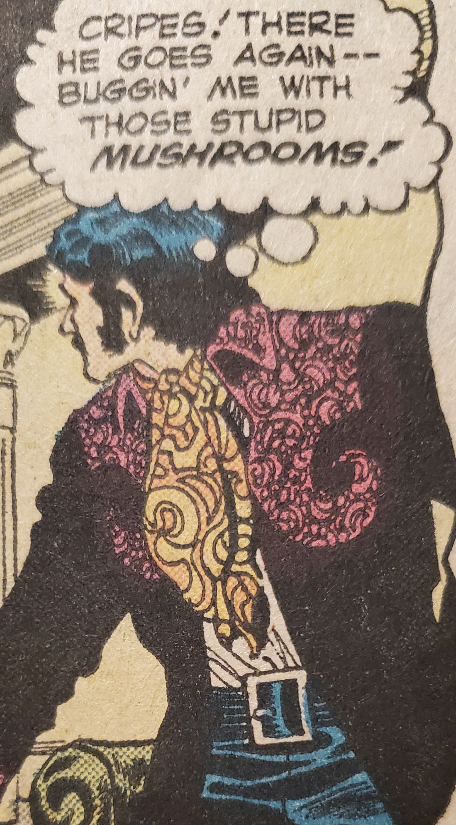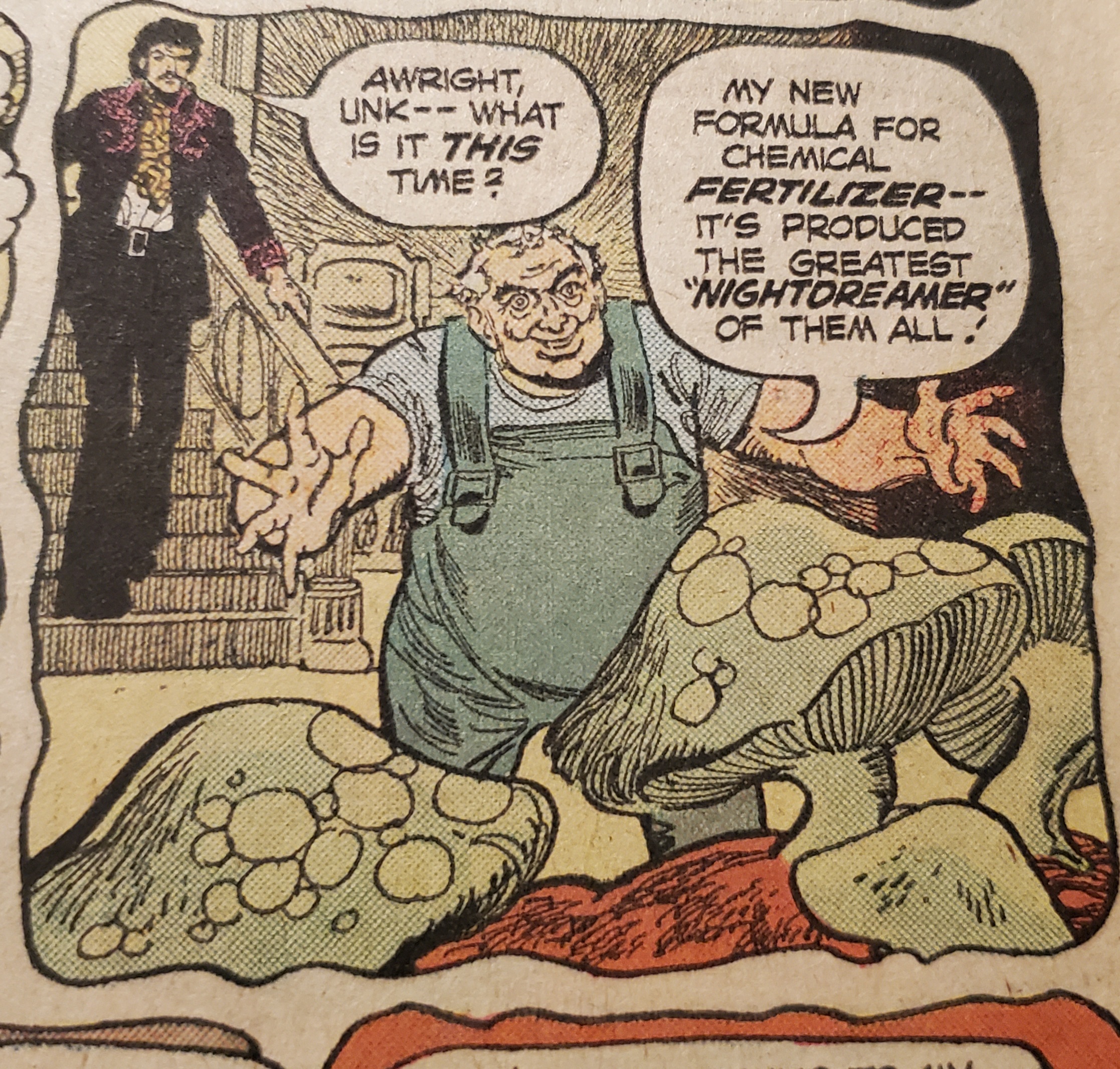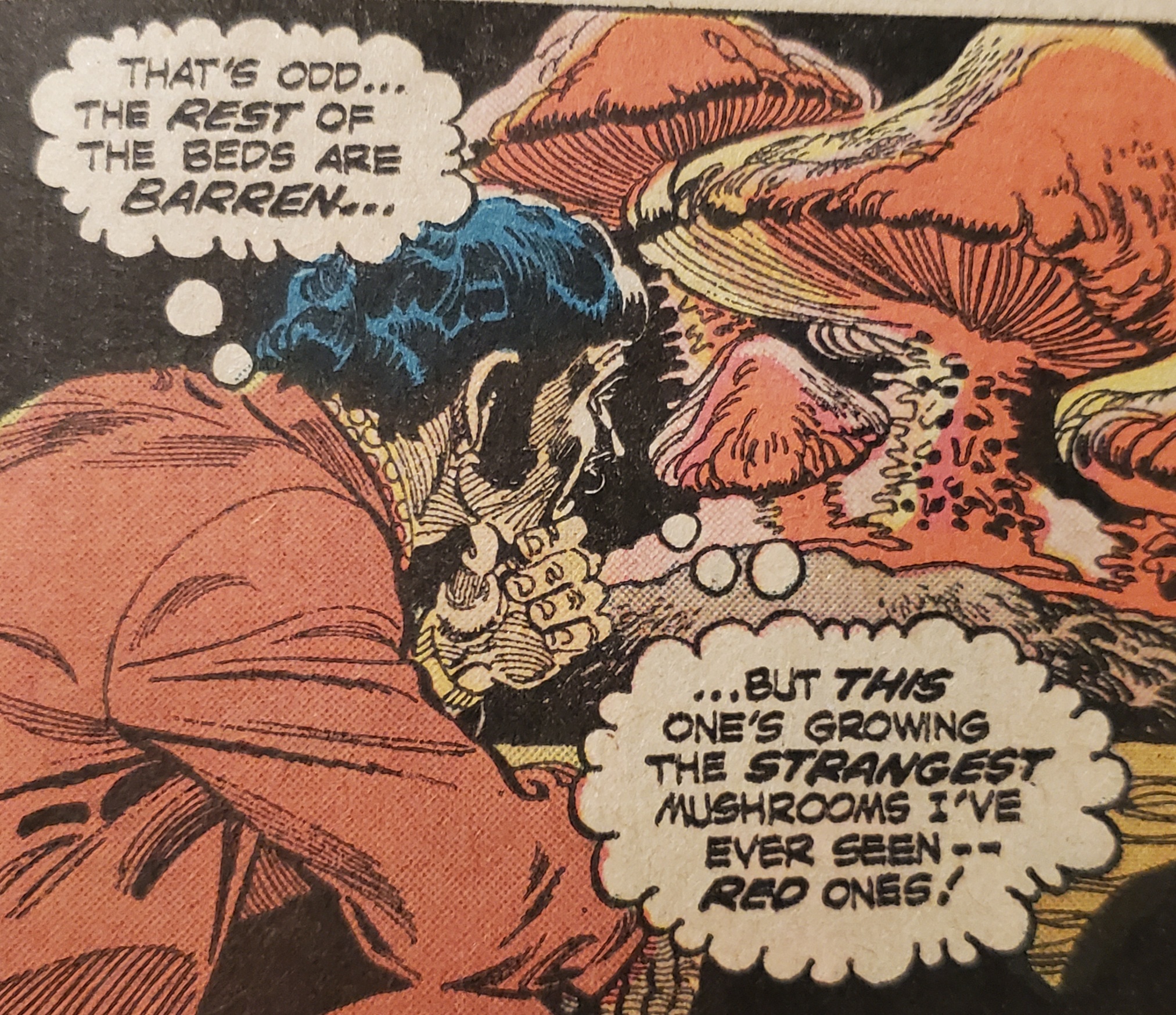 It turns out that the story that goes along with the cover is, as is often the case with these old horror comics, considerably more prosaic than what that promises, but it’s still of interest to the connoisseur of fungal terror.