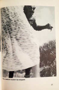 The book also gets inside the Gill Man’s head a little bit. “Within the Gill Man’s slow brain, a plan was forming,” the authors inform us, after the Gill Man has absconded with Lori Nelson’s character. “This woman was his. He would take her with him to the Black Lagoon.”