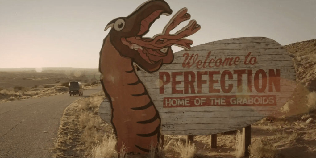 Scream wasn’t the first place I saw this kind of storytelling, though. Another of my favorite horror/comedy franchises does this too – perhaps even one better. As with Scream, the original Tremors (1990) is a self-aware horror movie that at once pays loving tribute to and lampoons a largely-defunct (at the time) subgenre of horror – in this case, the giant monster movies of the ’50s.