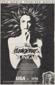 This is one of those movies that was never going to live up to how long it had been sitting on my watchlist. Directed by Tobe Hooper; very loosely adapted from a short story by Mr. Rear Window himself, Cornell Woolrich; starring a who’s who of supporting players including Twin Peaks‘ Madchen Amick, Anthony Perkins, R. Lee Ermey, Dee Wallace, and others. The pedigree of I’m Dangerous Tonight is what makes it a curiosity, but the plot is what initially got my attention.