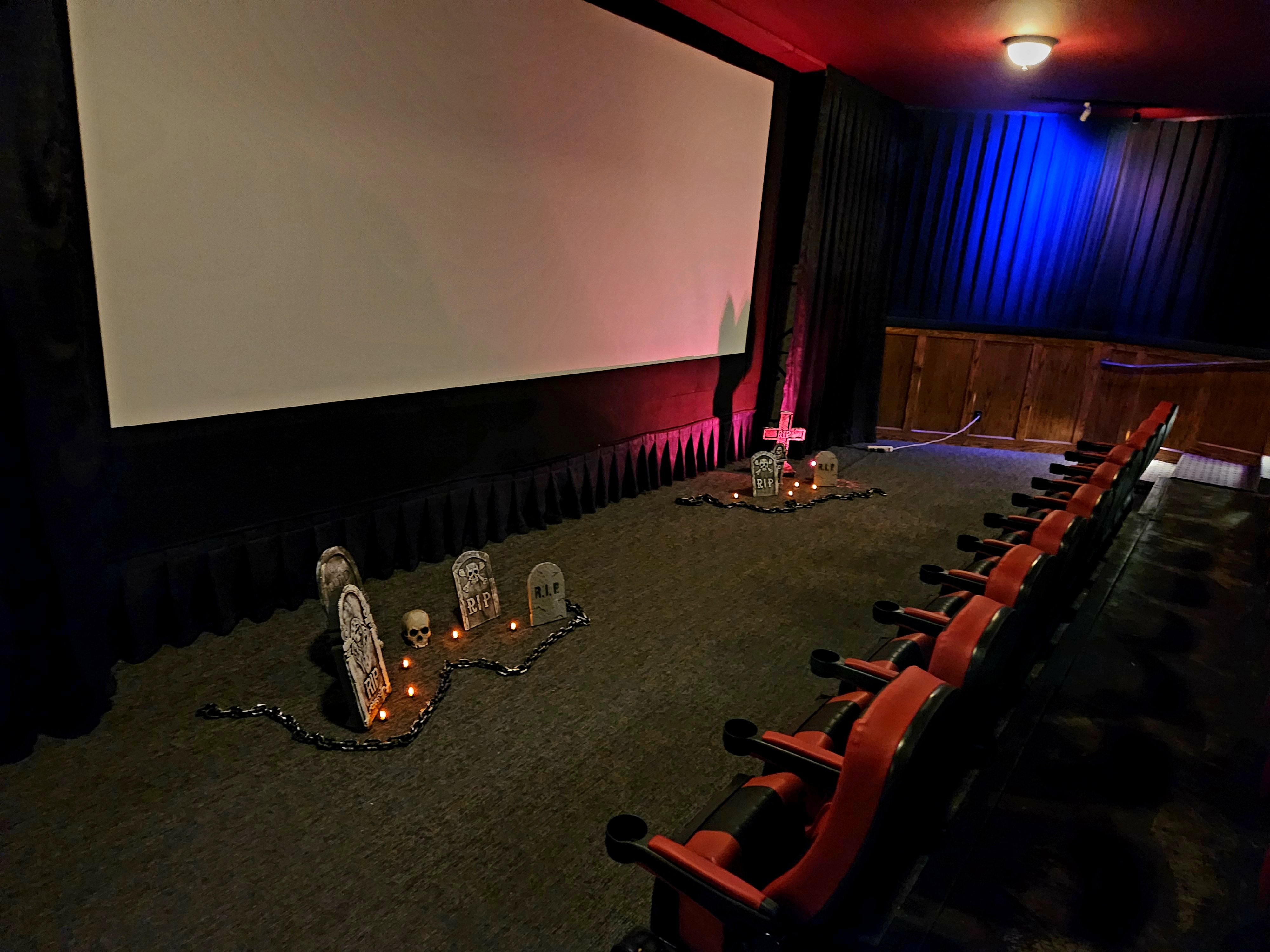 Eli, who hosts Analog Sunday, loaned me his tombstone props, and so I was able to decorate the place for some ambiance – harkening back to when I first saw the much worse haunted house movie of 1999, Jan de Bont’s frankly terrible remake of The Haunting, on opening night in a Wichita theatre whose lobby was decked out in fog machines and fake headstones.