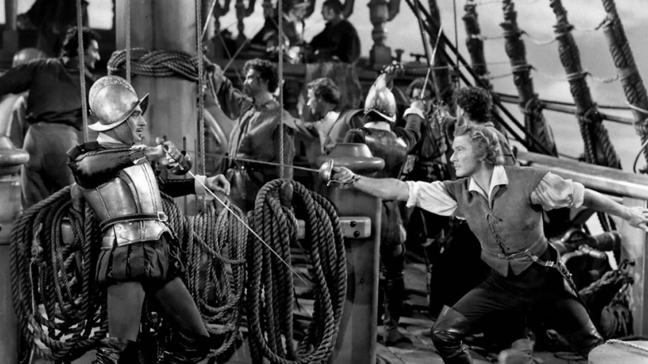 The other night, we watched The Sea Hawk (1940) for the first time. We watched this for several reasons, among them because Grace loves the old swashbuckling novels like the one this picture was adapted from. Books by folks like Rafael Sabatini (who wrote this one), Alexandre Dumas, Frank Yerby, and a variety of others, especially Samuel Shellabarger, who wrote one of Grace’s favorite books of all time, Prince of Foxes, itself adapted into a movie in 1949 starring Tyrone Power, Orson Welles, et al.