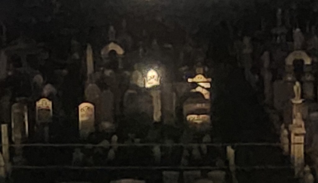 The location of that hotel room proved a serendipitous capstone (or should that be tombstone?) on an unexpected theme of the entire trip. The hotel was, you see, directly across the street from a sprawling necropolis straight out of a Fulci movie (Brandon Kawashima, one of the many people I wanted to see more of at NecronomiCon) dubbed it “Hotel Fulci.”)